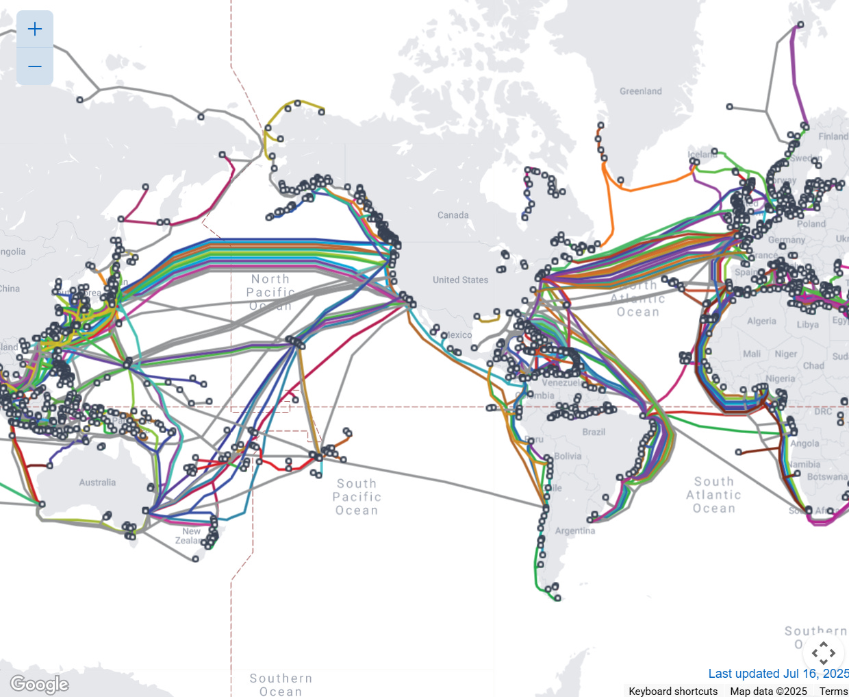 Screenshot from TeleGeography’s Submarine Cable Map (https://www.submarinecablemap.com/), captured August 2025.
