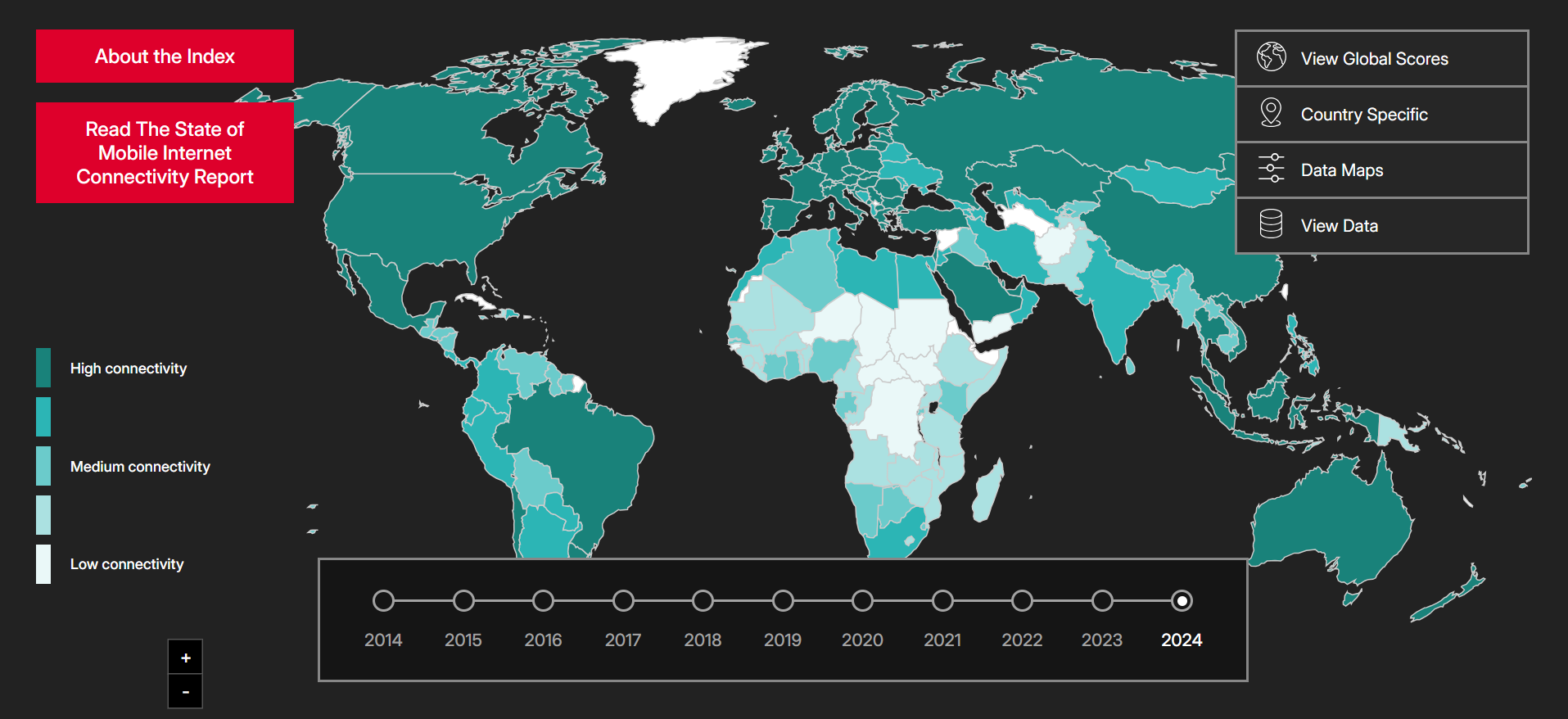 GSMA’s Mobile Connectivity Index – Mapping digital infrastructure strength and readiness worldwide, this index shows where the world is connected by mobile networks. It shows the potential for our businesses to operate borderlessly through digital channels, accessing customers and partners anytime, anywhere.